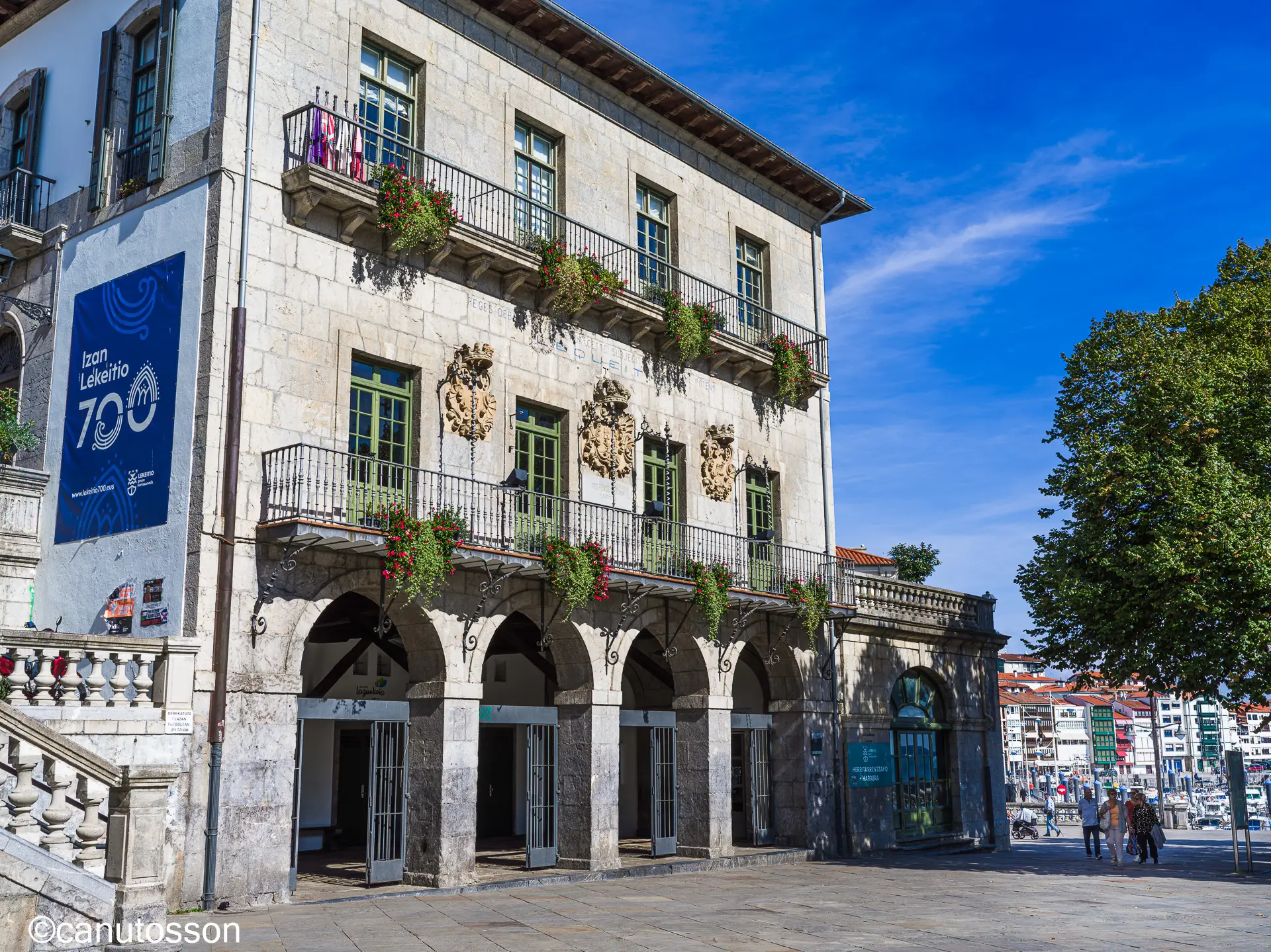 Palacio de Uribitarte sede del Ayuntamiento siglo XVII de estilo barroco. Construido sobre una casa-torre de la Edad Media. 2025 se celebra el 700 aniversario de la fundación de la villa. "Izan Lekeitio 700"