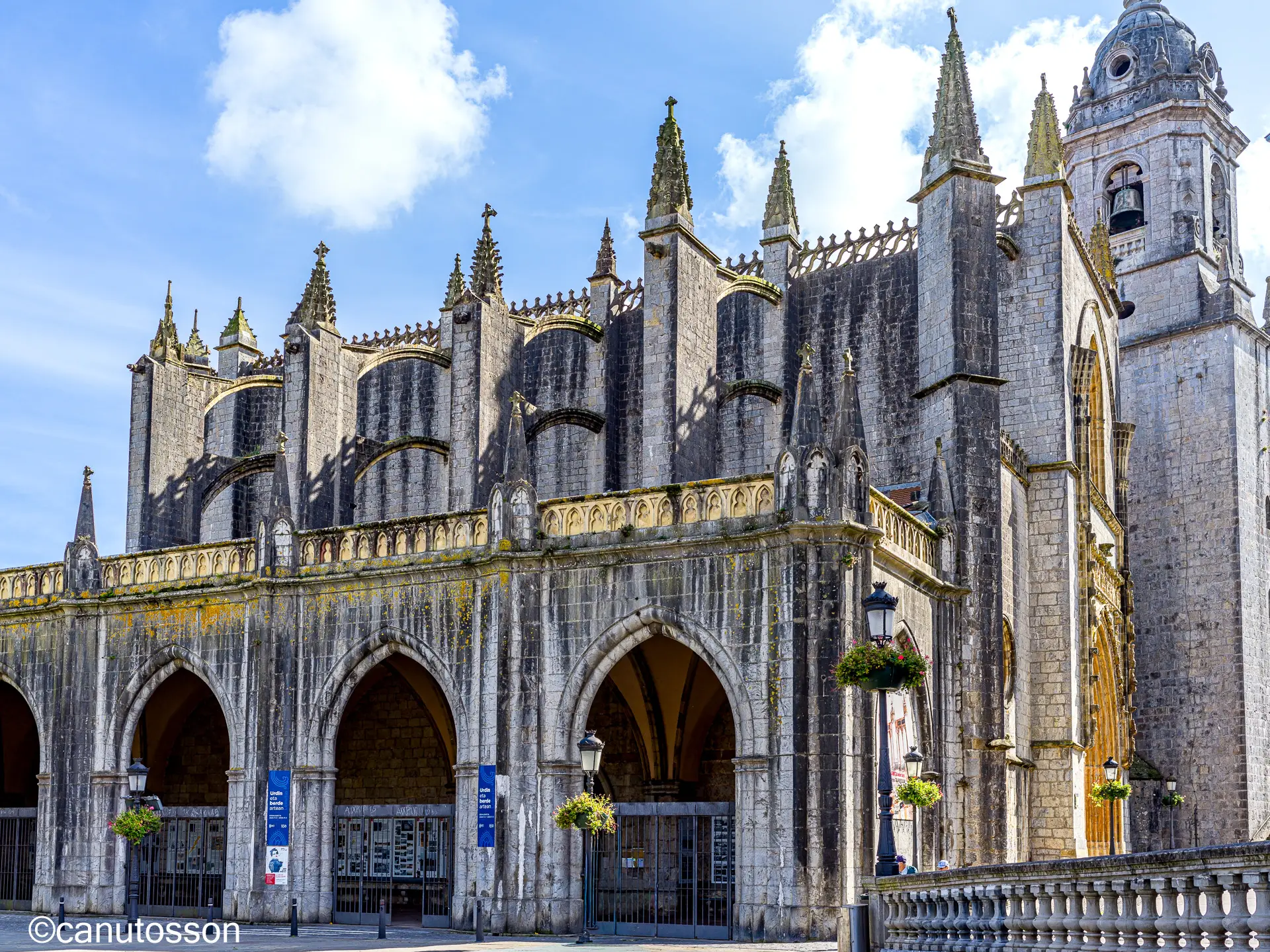Entrada lateral construída durante el siglo XV siguiendo el estilo gótico. Basílica construida en piedra caliza local de gran resistencia.