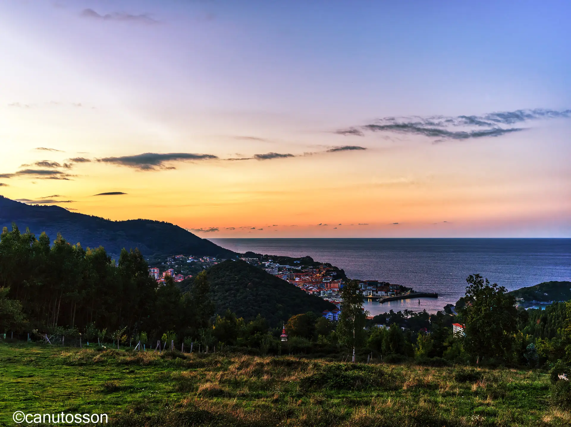 Lekeitio situado en una llanura costera entre montañas. Marcado por la desembocadura del río Lea, dos playas principales (Isuntza y Karraspio) y la isla Garraitz.