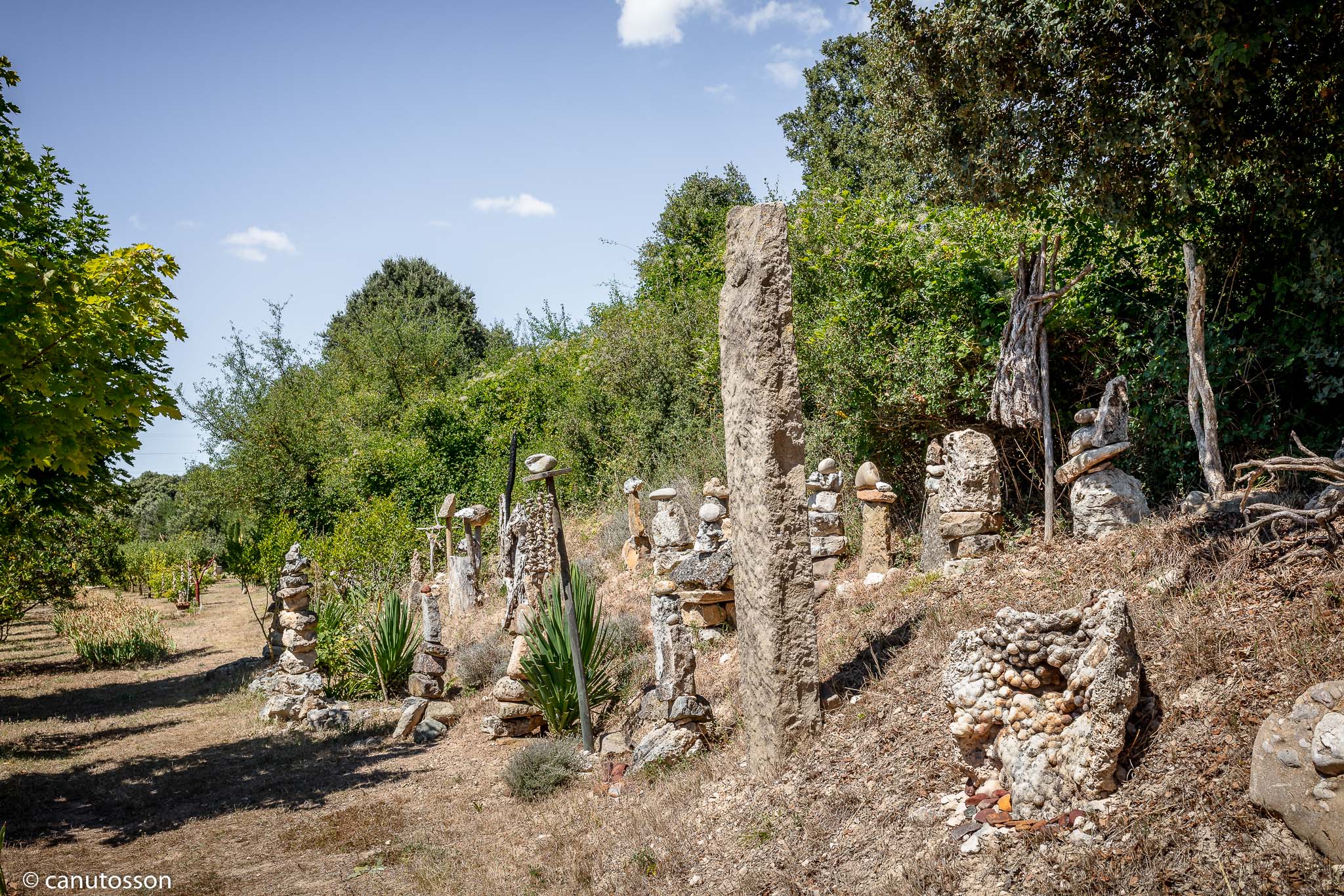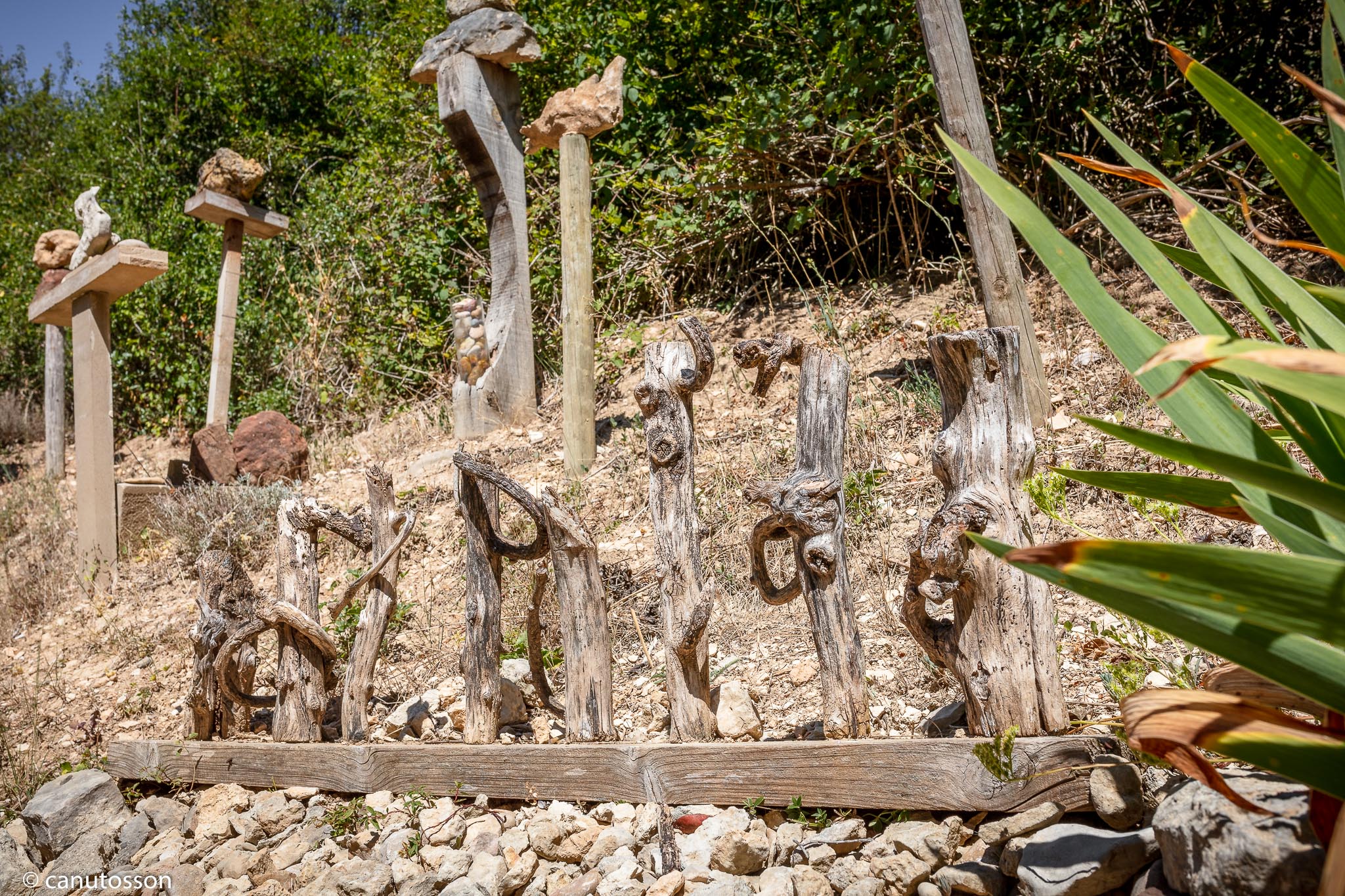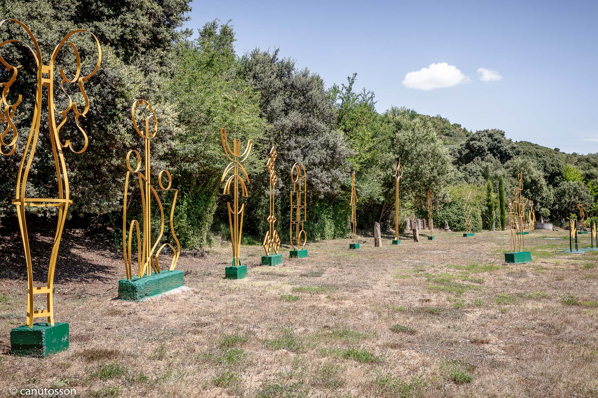 Hoy día, con 16 lustros a sus espaldas y como seglar ha vuelto a su pueblo natal. Muy cerca de él, en una estrecha franja de terreno heredado al pie de la carretera NA-132-A que llama «El Jardín» ha ido instalando toda una constelación de obras que podríamos considerarlas como arte efímero producto de su incansable búsqueda y pasión por dar rienda suelta a tu capacidad creativa.