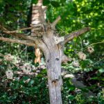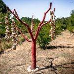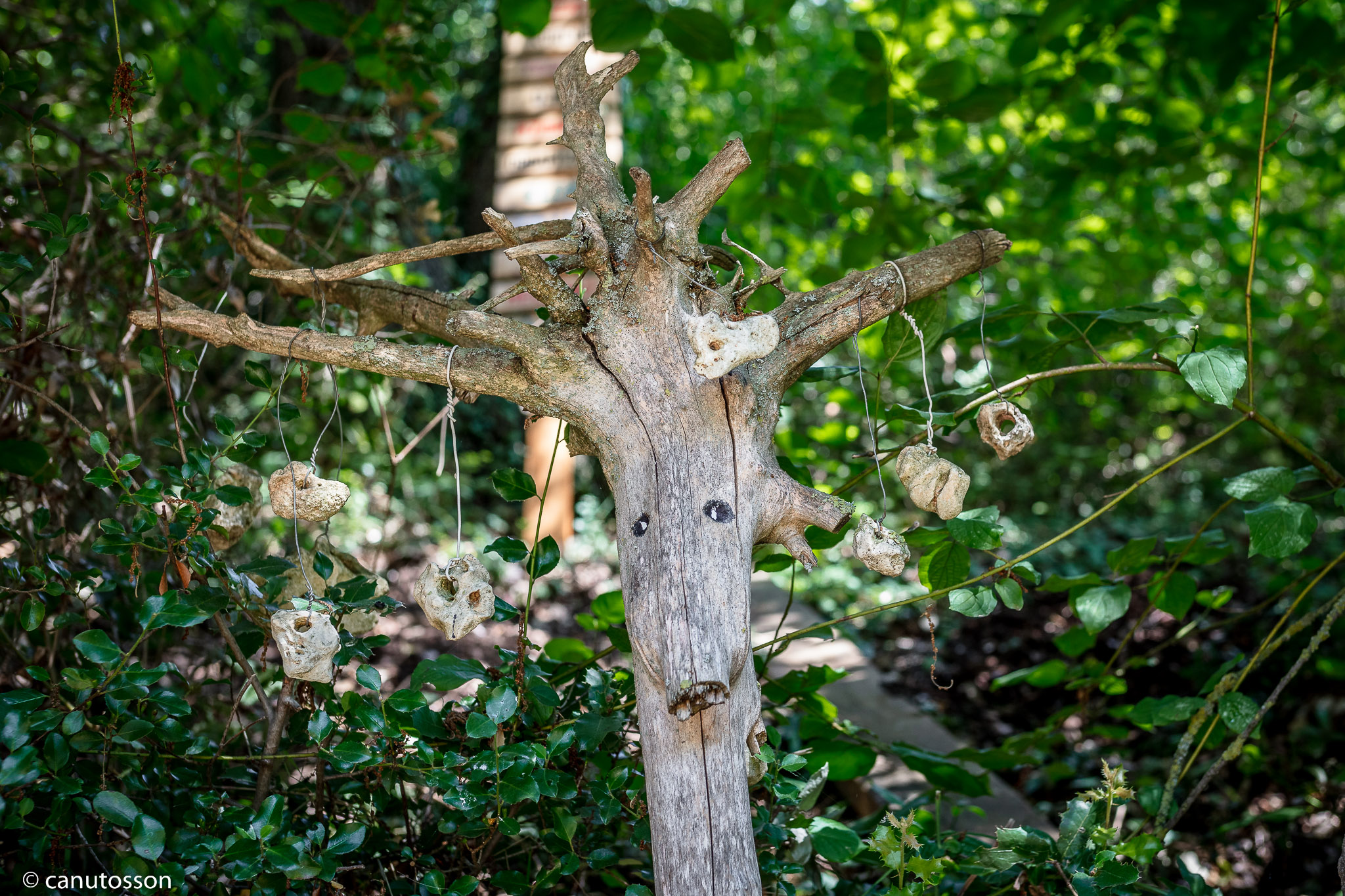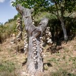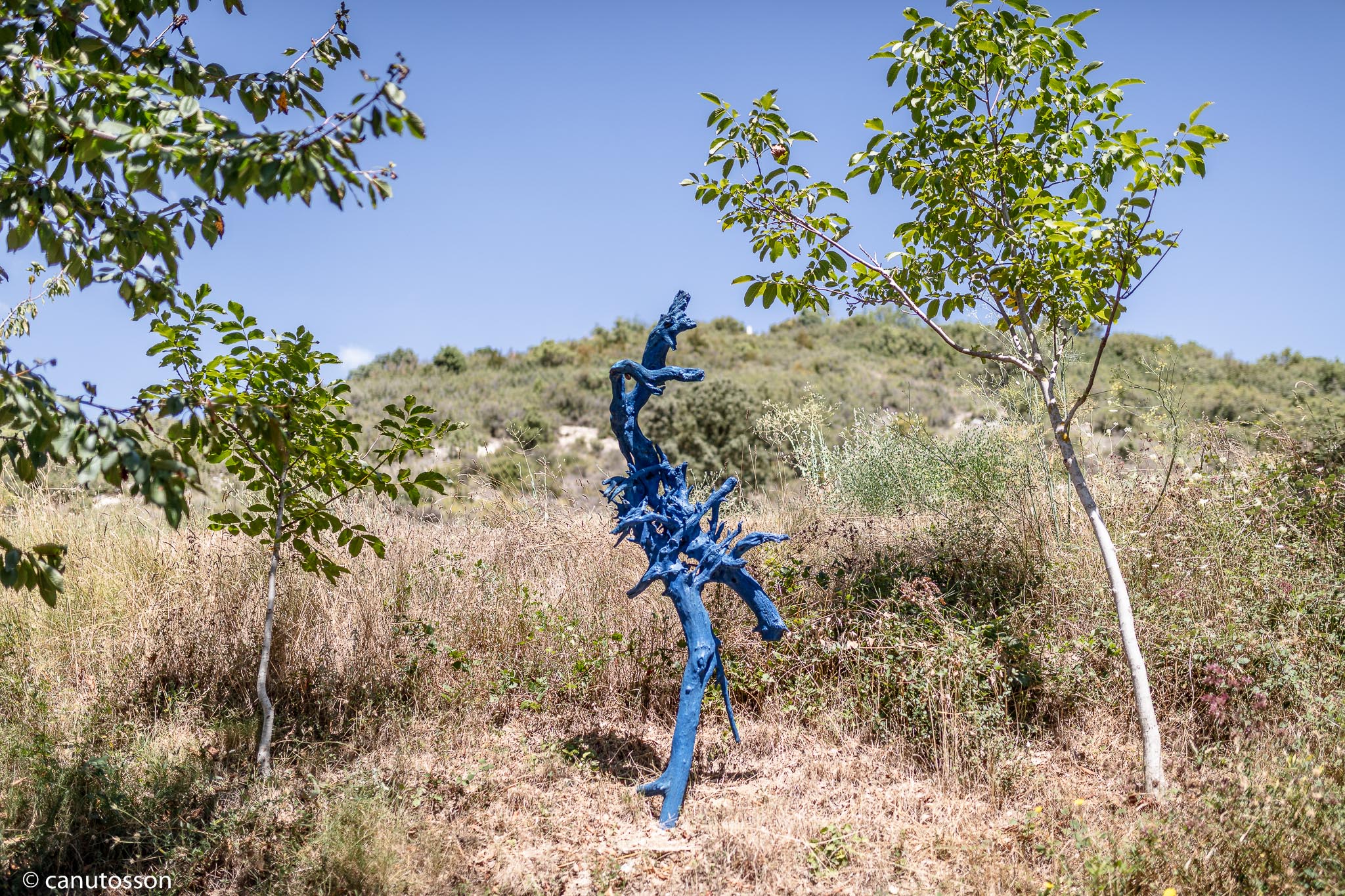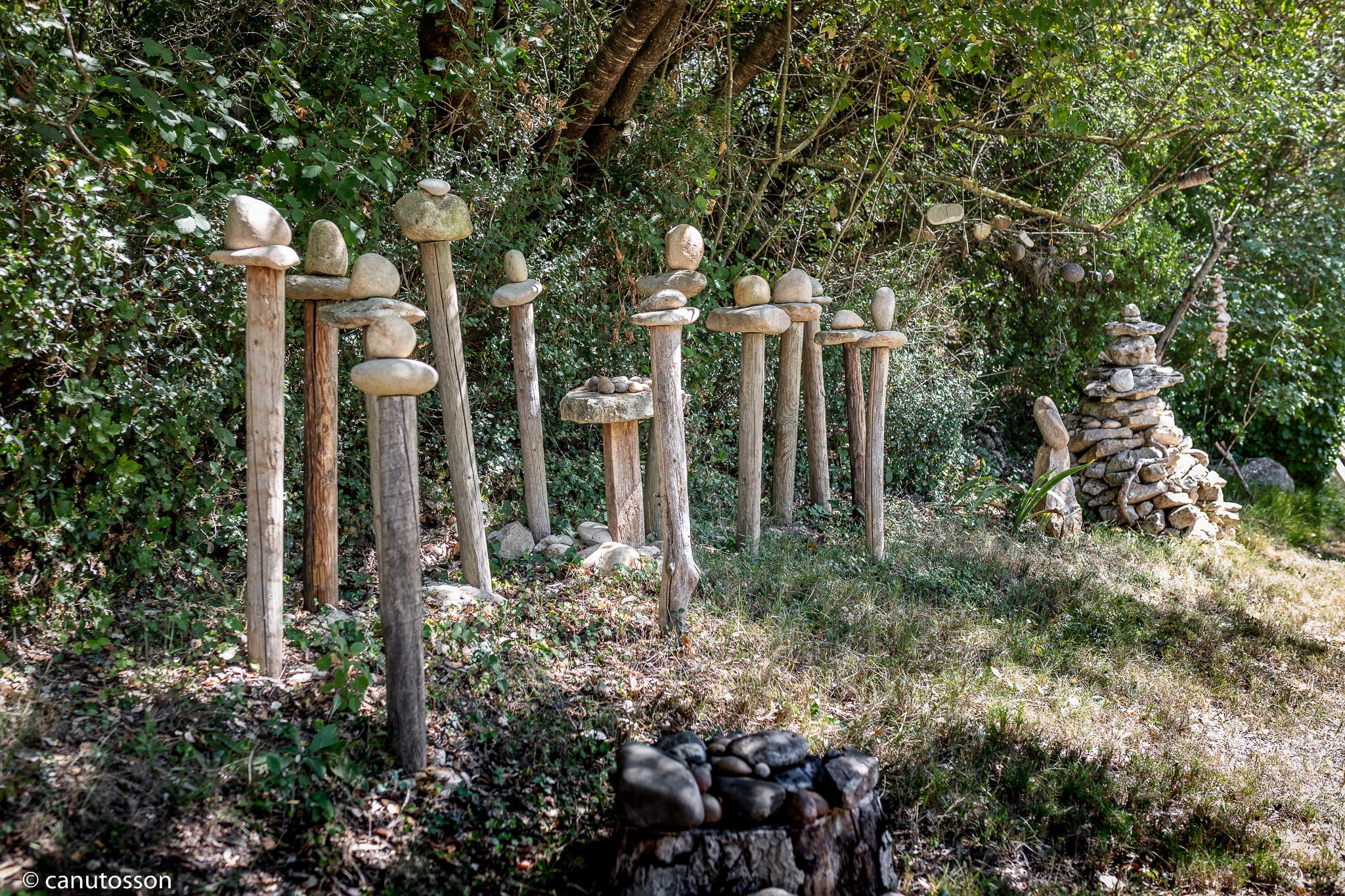 Hoy día, con 16 lustros a sus espaldas y como seglar ha vuelto a su pueblo natal. Muy cerca de él, en una estrecha franja de terreno heredado al pie de la carretera NA-132-A que llama «El Jardín» ha ido instalando toda una constelación de obras que podríamos considerarlas como arte efímero producto de su incansable búsqueda y pasión por dar rienda suelta a tu capacidad creativa.