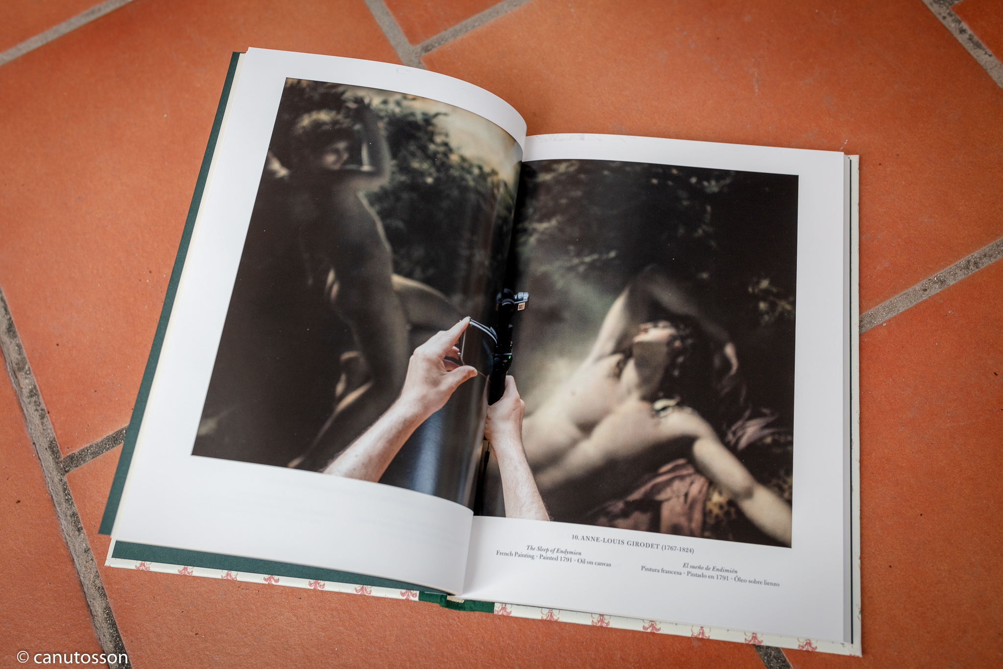 Estamos ante una propuesta fotográfica en forma de foto libro que a primera vista (atraído por la convocatoria del cartel anunciador del evento en el que se veía las manos y antebrazos de uno de los visitantes del museo sosteniendo un móvil con la intención de fotografiar el cuadro de Anne-Louis Girodet (1767-1824 «El sueño de Endimión»), me provocaba, sin tener otras referencias que el mentado cartel anunciador, ciertas dudas sobre la originalidad creativa de la propuesta del fotógrafo.
