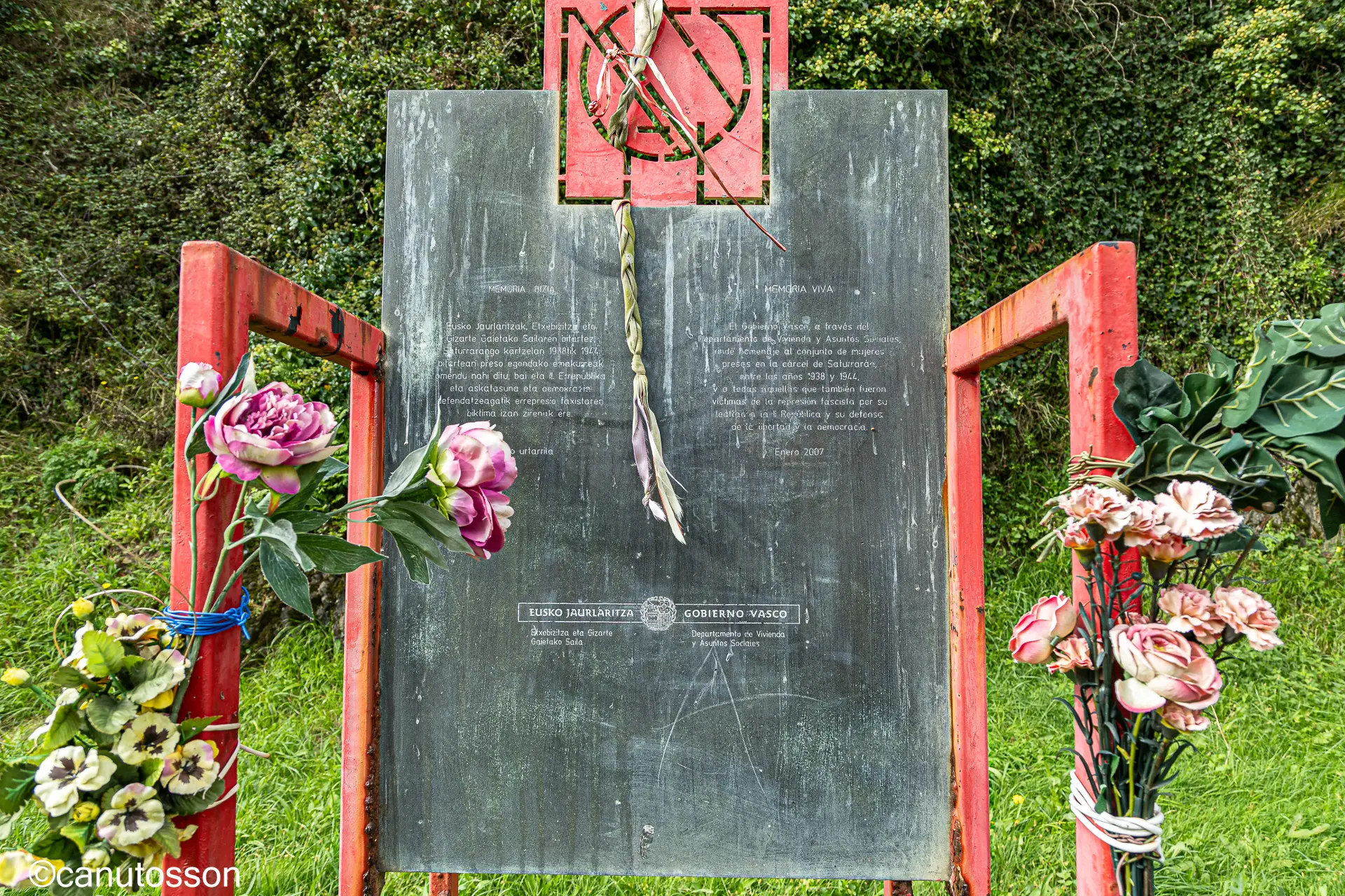 «El Gobierno Vasco a través del Departamento de Vivienda y Asuntos Sociales rinde homenaje al conjunto de mujeres presas en la cárcel de Saturrarán entre los años 1938 y 1944.
