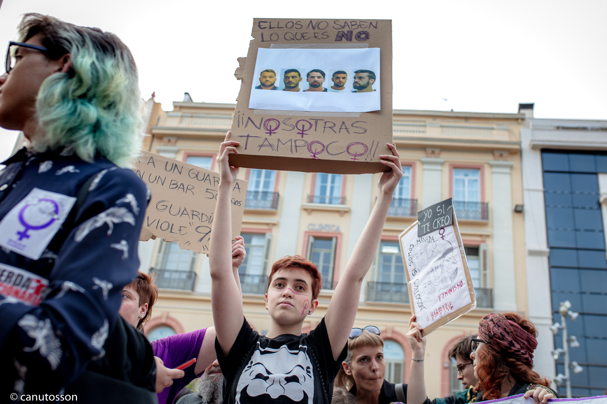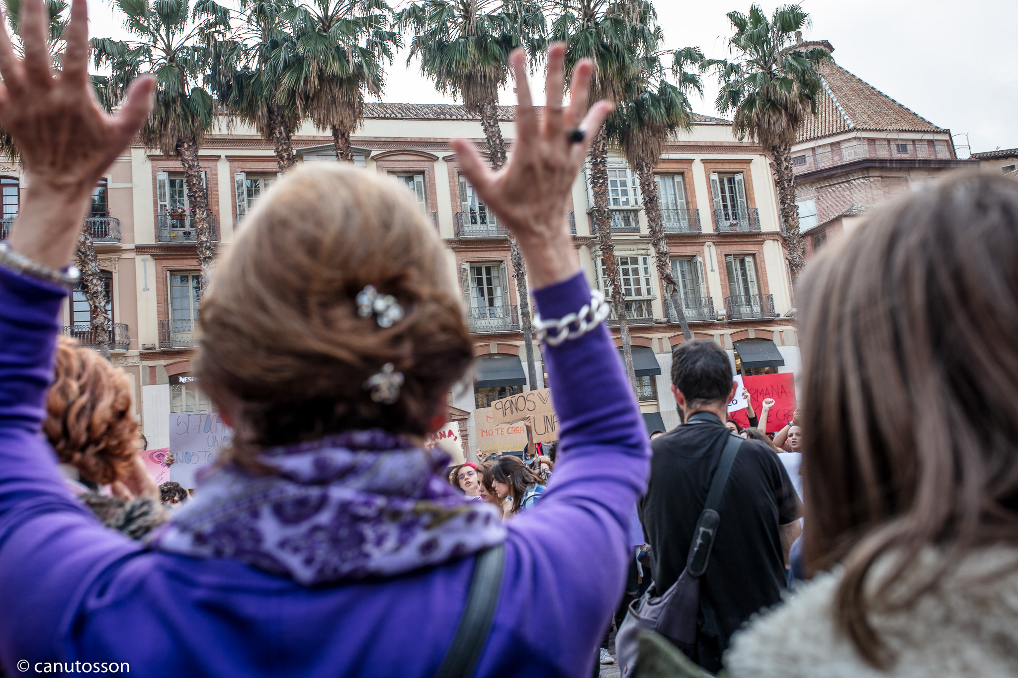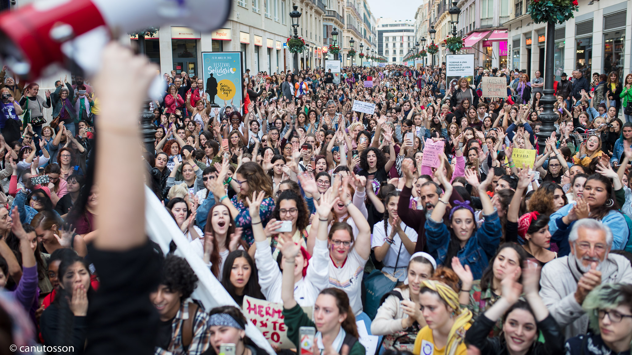 Para muesta un botón. Las fotos son de esta tarde en Málaga. La convocatoria de los grupos feministas a una concentración de repudia a la sentencia comenzó con una modesta participación en la Plaza de la Constitución, pero a medida que iban pasando los cuartos el número de congregados ha ido en aumento hasta llegar a abarrotar toda la calle Larios. El cabreo era tan palpable que se podía corta con cuchillo. Nadie en su sano juicio entiende la argumentación de la sentencia.