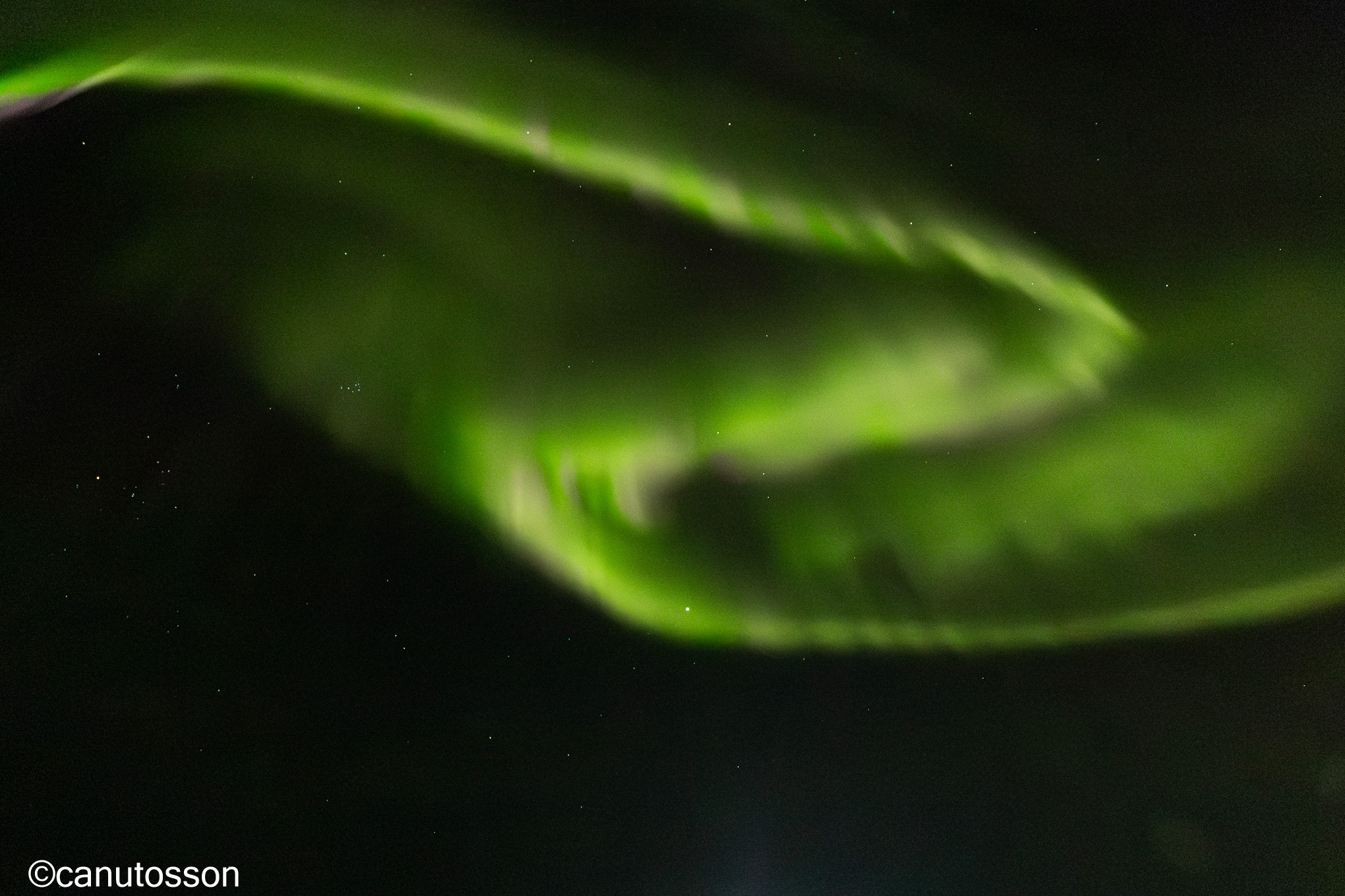 El caso es que andábamos jugando con la nieve recién caída y uno de los nietos observó exaltado que teníamos la auroras encima de nuestras cabezas. Ni cortos ni perezodos sacamos apresuradamente móviles y cámara ante un impresionante e infinito ir y venir de estos efectos magnéticos en forma de ondas y cortinas cósmicas.